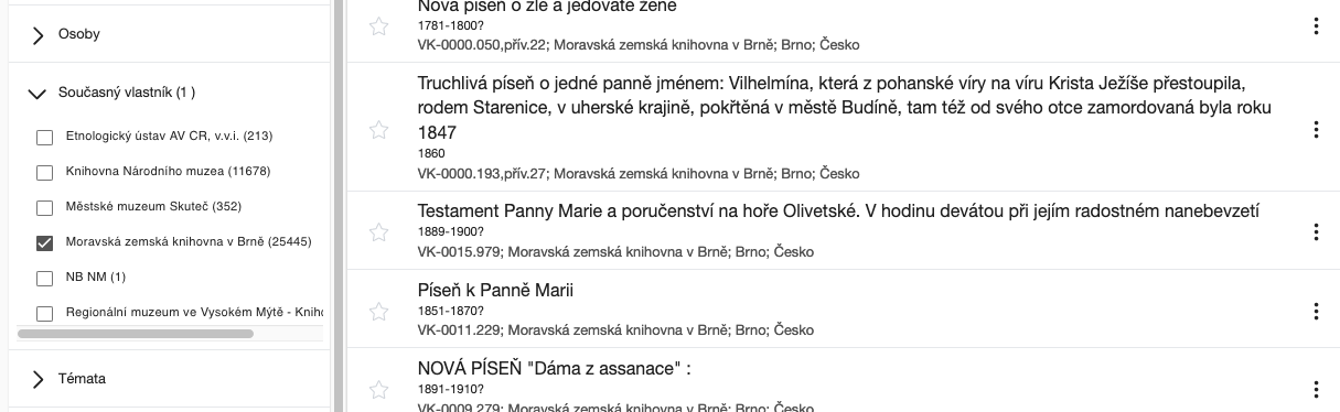 Pro Špalíček bylo nutné nejdříve převést záznamy kramářských tisků Moravské zemské knihovny do jiného datového formátu, máme tedy velkou radost, že se to povedlo a můžeme vám zprostředkovat spoustu nových informací.